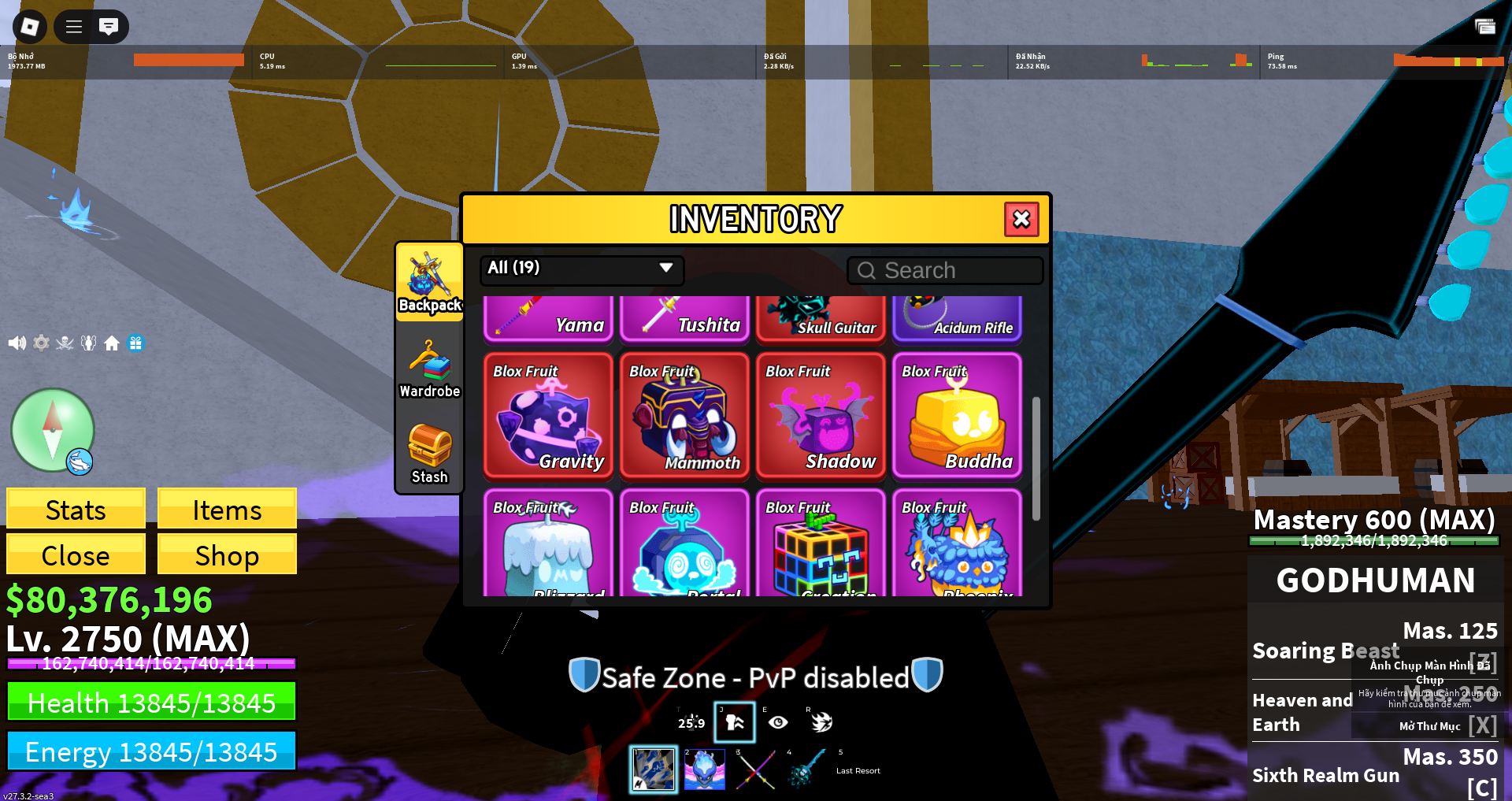 Max lv 2750 269k tiền raid cho ae sài siêu đã ,80m beli rất nhiều cho ae nhé nhìu df trong rương cho ae trade vs bạn bè nhiều item vs sword cho ae sài có sông kiếm và soulguitar nhiếu thứ khác , có nón admin ,và có mảnh gương cho ae updat tộc v4 đầy đủ ,có df hiếm nhé ae nhiều mlee v2 cho ae sài, Đang ăn Gas nha, 600 Mas God sup Acc trắng thông tin hoàn toàn Đã được Admin check .... có song kiếm và soulguitar và tộc human v3 khá ok có skill kiếm cho ae lun: